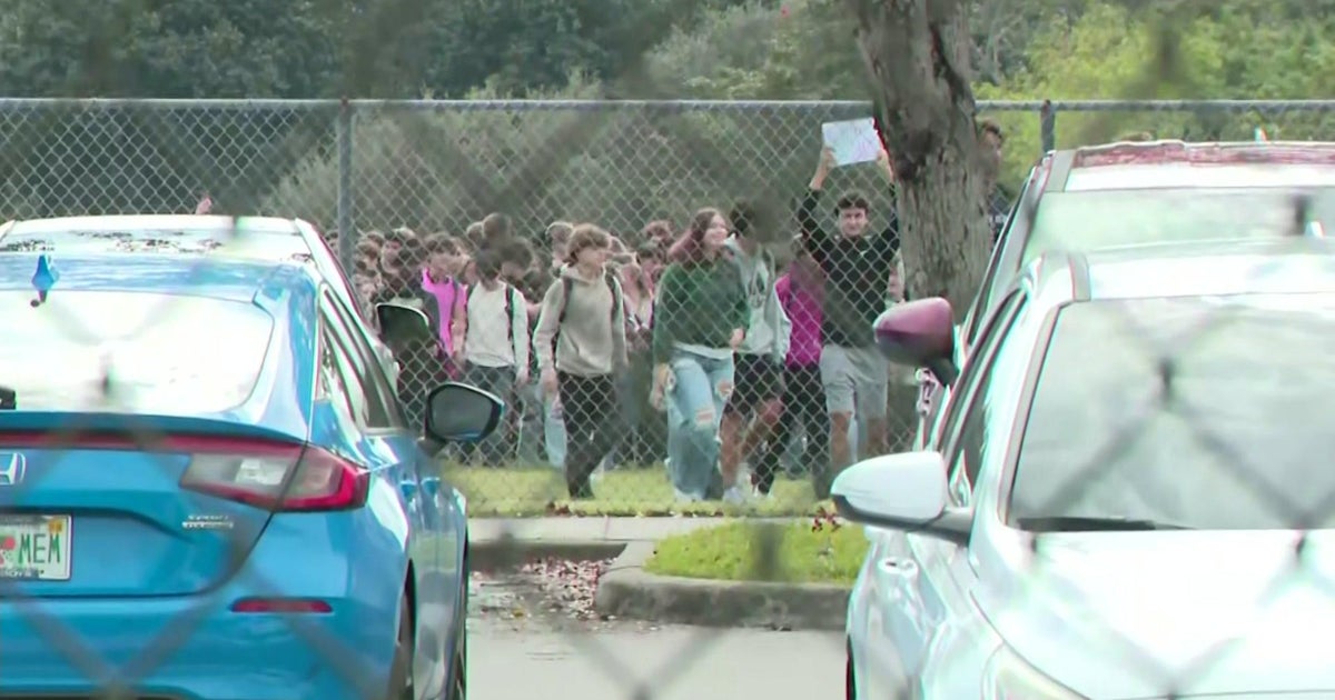 Monarch High School students stage walkout in support of reassigned principal - CBS News